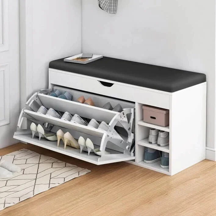 Zapatera con Cajón Giratorio y Banco Acolchado